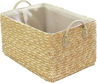 【メルカド かご収納雑貨の店】 ストロー製収納バスケットハンドルタイプ (カラー:ナチュラル/内布:無地)