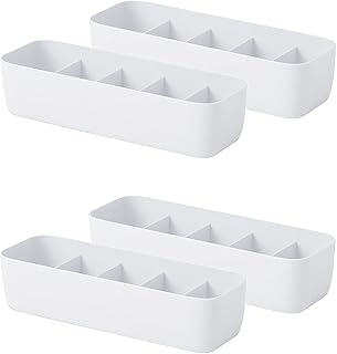 QMO 5格収納ボックス 4個セット 引き出し仕切り 下着収納ボックス 靴下・ネクタイ・ショーツ収納ケース 小物入れ 整理 収納 ホワイト