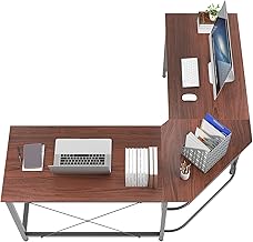 Soges l字デスク パソコンデスク ㍶デスク l字型 デスク コーナーデスク ゲーミングデスク 机 ワークデスク オフィスデスク 勉強机 シンプルデスク 省スペース 在宅勤務 幅(90+60+90)奥行約55×高さ75cm(クルミ)
