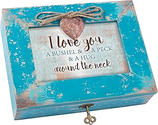 I Love You a Bushel and a Peck Teal Wood Locket Jewellery Music Box Plays Tune You are my Sunshine