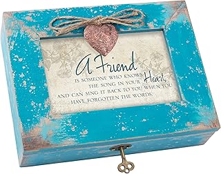 A Friend Knows Your Heart Teal Wood Locket Jewellery Music Box Plays Tune That's What Friends are For