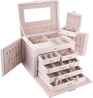 ジュエリーボックス ジュエリー収納 ス アクセサリーケース 宝石箱 5層の引き出し大容量 PUレザー 両開きドア(ホワイト)
