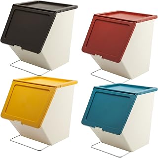 スタックストー ペリカン ガービー 38L 全6色の中から選べる4個セット ゴミ箱 ごみ箱 ダストボックス おしゃれ ふた付き stacksto pelican (ブラウン×レッド×イエロー×ブルー)