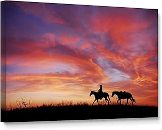 Niwo ART (TM - 馬のシルエットサンセット、キャンバスに乗る馬、ジークレー壁アート ホームデコレーション、ギャラリーラップ、ストレッチ、フレーム付き、すぐに掛けられる(30インチ x 20インチ x 1.5インチ)