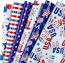 WRAPAHOLIC ラッピングペーパーシート メモリアルデイ 7月4日デザイン 誕生日 ホリデー ウェディング ベビーシャワー用 1ロール6枚入り 17.5インチ x 30インチ