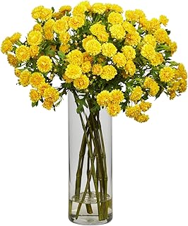 Nearly Natural 1216-YL 日本のシルクフラワーアレンジメント イエロー 30インチ x 9インチ x 7.5インチ
