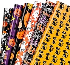 WRAPAHOLIC ギフトラッピングペーパーシート - かぼちゃと黒猫デザイン ハロウィン ホリデー パーティーギフトラッピングに最適 - 1ロール6枚入り - 17.5インチ x 30インチ 1枚