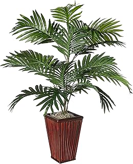 Nearly Natural 6675 アレカ ヤシの木 竹の花瓶 装飾シルク植物 グリーン 7.5インチ x 9インチ x 30インチ