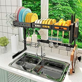 ADBIU シンク上 食器乾燥ラック キッチンシンク用 (30インチ≤シンク幅≤ 38.5インチ) ステンレススチール 収納ラック (ブラック 長さ調節可能)