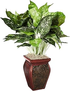 ほぼ天然 6676 ディフェンバチア 花瓶付き 装飾用シルク植物 グリーン 7.5インチ x 9インチ x 30インチ