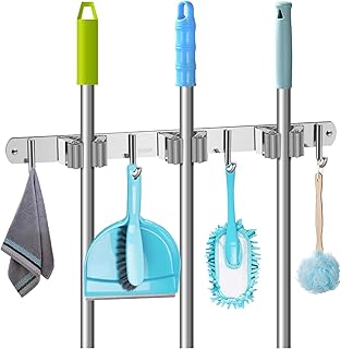 Favbal ほうきモップホルダーコンボ – ガレージストレージツールオーガナイザーハンガー ステンレススチール 壁取り付け キッチン バスルーム クローゼット オフィス ガーデン用