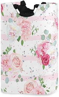 SUABO ランドリーバスケット ピンクローズフラワー ランドリーバスケット ポータブル折りたたみ式衣類オーガナイザー ハンドル付きストレージバッグ 子供部屋 バスルーム用