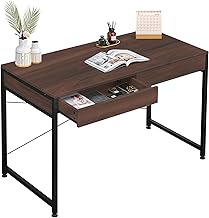Lovinouse パソコンデスク PC デスク 机 幅100cm 木製 引き出し付き アジャスター付き 組立簡単 おしゃれ オフィスデスク 学習机 勉強机 在宅勤務 (ウォルナット)