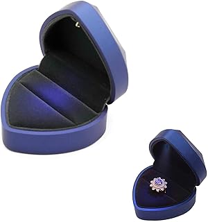HOLLY TRIP リングボックス ハート型 ベルベットウェディングリング ジュエリーボックス LEDライト付き プロポーズ婚約 ブルー