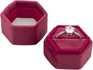 Koyal Wholesale ベルベットリングボックス 六角形ヴィンテージ 結婚式 リングボックス 取り外し可能な蓋付き 婚約指輪ボックスホルダー モダン プロポーズアイデア ピンク