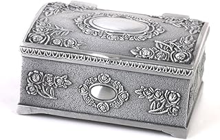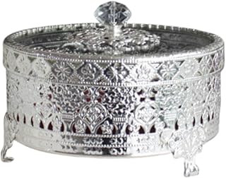 ヴィンテージラウンドジュエリー装飾小物ボックス リングボックス アンティークメタルケース 4.7インチ(シャイニーシルバー、ラージ)