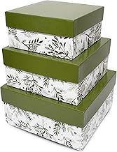アメリカ製 リサイクル紙クラフトボックス – 6.25インチ、7.25インチ、8.25インチ – ネスト正方形ボックス 蓋付き (ラージ3セット – パイングリーンホリデー)