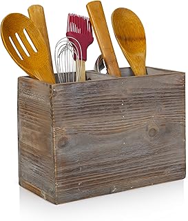 Besti 素朴なキッチン用具ホルダー コンパートメント付き | トーチ木製食器オーガナイザー | カトラリー ナプキン カップなどに | 大きなヴィンテージカウンタートップキャディボックス 2 Comp.