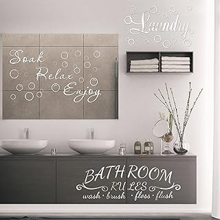 ランドリールームデカール アクリル バスルーム ウォールデカール ステッカー 防水 ミラー ウォールデコ ホーム バスルーム ランドリー ルーム ウォールアート デコレーション (シルバー)