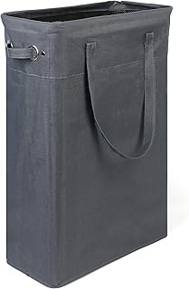 LotFancy 45L スリム 洗濯物かご ハンドル付き 22インチ 小さい 薄い洗濯物かご 狭い洗濯物かご 折りたたみ式 汚れた衣類コーナービン 収納バスケット レディース メンズ