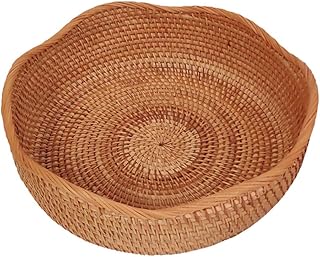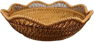 tonntyann 収納カゴ 手編み ラタンバスケット 田園風 小物入れ フルーツバスケット 卓上収納ケース バスケット 手編み お菓子収納 チェスト 雑貨バック 整理箱 丸型 (26cm*8cm)