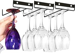 Kalolary ワイングラスラック キャビネット下 脚付きグラスハンガーホルダー ワイヤーワイングラスの収納ハンガーラック メタル壁取り付け式オーガナイザー キャビネットキッチンバー用 (3パック、ブラック)