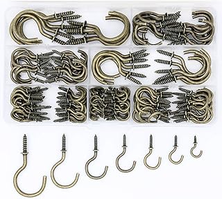 166個 7サイズメタルハンギングフックキット 吊り下げ用天井フック ねじ式フック カップフック レトロルーム装飾用 (1-1/2インチ 1-1/4インチ 1インチ 7/8インチ 3/4インチ 5/8インチ 1/2インチ) - ブロンズ