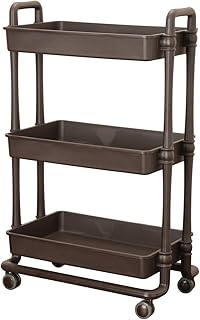 キャスター付き ワゴン doric プラスチック 軽量 ボックス 3段 幅55cm×奥行32cm×高さ87cm ダークブラウン [ バスケットトローリー エステワゴン ネイルワゴン 美容室ワゴン キッチンワゴン マルチワゴン サイドワゴン キャスターワゴン インテリア 収納 業務用 サロン ラック ]