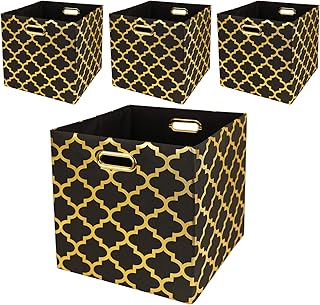 Posprica 収納キューブ – 13×13 折りたたみ式ストレージビン ボックス コンテナ 引き出し シェルフバスケット (4個セット ブラック/ゴールドランタン)