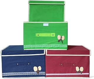 ストレージボックス 3個パック 折りたたみ式ストレージビン 蓋とハンドル付き – 詰め合わせカラーコンテナ おもちゃ クローゼット 寝室整理用