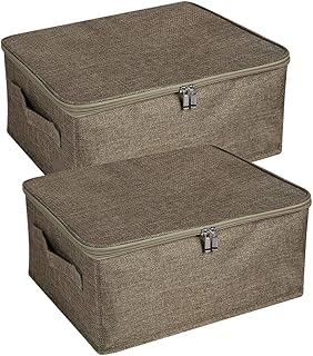 ANMINY 2個 ストレージビン ジッパー蓋ハンドル付き ストレージボックス PPプラスチックボード 折りたたみ式フタ コットンリネン生地 ホームキューブ バスケット クローゼット 衣類 おもちゃオーガナイザー コンテナ コーヒー Sサイズ