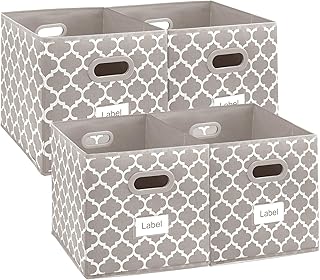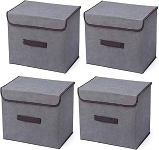蓋付き収納キューブボックス 4個パック クローゼット用衣類箱 リネン生地 折りたたみ可能な衣類収納オーガナイザー コンテナ バスケット カバー付き 衣類 おもちゃ 本 CD用 ベージュ 10 x 10 x 15インチ