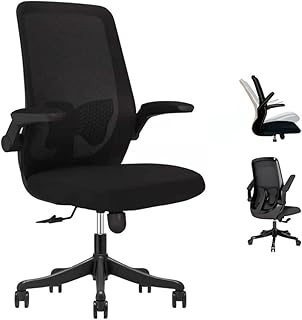 IWMH オフィスチェア パソコンチェア テレワーク 12CM厚手 座面 メッシュ 椅子 イス 跳ね上げ式アームレスト パソコンチェア 人間工学 通気性 360度回転 座面昇降 強化ナイロン ロッキング機能 コンパクト おしゃれ (ブラック)