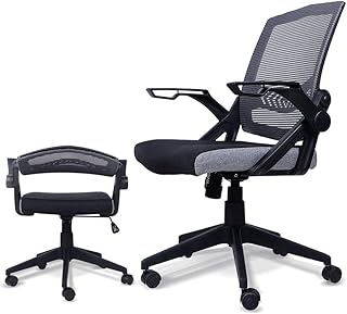 Komene オフィスチェア 椅子 事務椅子 跳ね上げ式アームレスト デスクチェア 厚手座面 人間工学イス 昇降機能付き 約120度ロッキング メッシュ 通気性 頑丈な鉄ベース 腰サポート調節可能 360度回転 コンパクト 静音PAキャスター ワークチェア パソコンチェア 仕事用 勉強用椅子