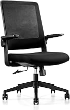 BERLMAN 椅子 デスクチェア オフィスチェア メッシュチェア イス コンパクト 跳ね上げ式アームレスト 肉厚クッション 360度回転 通気性 昇降機能付き ロッキング機能 スチールベース 音無キャスター (ブラック)