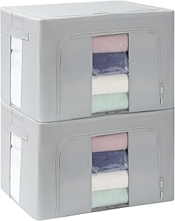 AWAYTR 衣類収納ケース 2個セット 衣類収納ボックス 衣装ケース 折り畳み式 収納ボックス 布団収納袋 ふた付き 折り畳み 大容量 衣類収納 洋服 収納 頑丈 高耐久性 防塵 防湿 布団 洗濯物 おもちゃ収納 可愛い (66L-グレー)… (グレー)