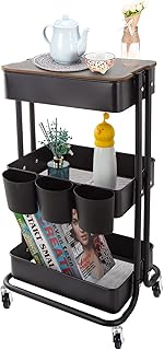 Melody House キッチンワゴン 3段 天板 キッチン ワゴン バスケットラック トローリー キッチン収納カート キャスター付き 組立簡単 収納カップ おしゃれ 隙間収納 台所 収納棚 小物収納 浴室 ブラック